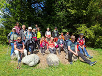 Da staunten die Wanderführer Franziska und Hubert Romankewicz nicht schlecht, als sie sahen, welch große Truppe am Sonntagmorgen vorm Vereinshaus stand. Bis auf ein paar Musiker, die sich fürs Erstkommunion-Spielen richteten, wollten alle 24 Leute und 2 Hunde mit zur Wanderung. Nach der Begrüßung von Hubert ging es zügig in Fahrgemeinschaften Richtung Albstadt zum Startpunkt Parkplatz „Setze“. Die Sonne lachte vom Himmel. Auf angenehmen Wanderwegen wanderten wir durch den Wald, über Freiflächen und auch am Trauf entlang. Schön zu sehen, wie sich das Laub langsam aber sicher an den Ästen entfaltet und der Wald sein grünes Gewand anzieht. Vorbei am Mühlenfels und Galgenfels erreichten wir die Schleicherhütte und suchten uns dort ein nettes Plätzchen, genossen die Aussicht und ließen uns das Rucksackvesper schmecken. Gut gestärkt ging es weiter über die Hexenküche zum Schlossfelsenturm. 118 Stufen mussten bezwungen werden, um von der Aussichtsplattform auf knapp 970 Metern ü.NN den weiten Rundumblick über das obere Schmiechatal und Albstadt-Ebingen genießen zu können - einfach herrlich! Ein Einkehrschwung im Waldheim rundete den gelungenen Wandertag ab. Franziska und Hubert, vielen Dank für diese wirklich aussichtsreiche Tour, es war schön, dabei gewesen zu sein.